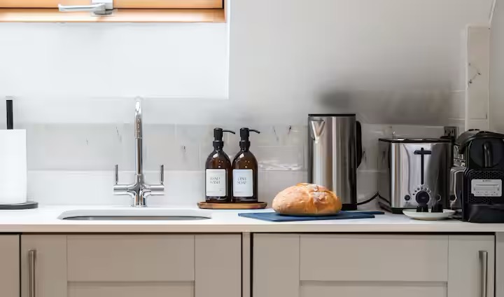 Well-Equipped Kitchen: Perfect for cooking your own meals, the kitchen features a full range of appliances, including a dishwasher, oven, fridge, Nespresso coffee maker, and a dining table for four. Complimentary essentials like cooking basics, a loaf of sourdough bread, and milk add thoughtful touches to your stay.