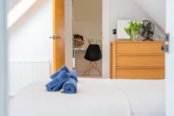 Sleep Tight: Enjoy restful sleep in the comfy bedroom with luxurious Egyptian cotton linens from John Lewis. Room-darkening blinds ensure a peaceful night’s rest.