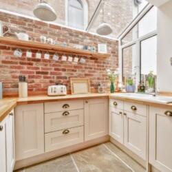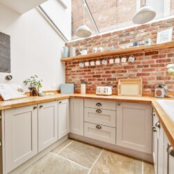 - Kitchen: Light and airy, featuring a vaulted glazed ceiling and underfloor heating. It’s fully equipped with a Cookmaster range cooker with electric oven and gas hob, dishwasher, fridge/freezer, washer/dryer, microwave, and coffee percolator.