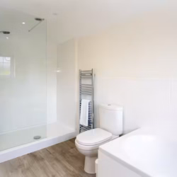 Upstairs, you’ll find three welcoming bedrooms. Two spacious king-size rooms and a smaller bedroom offer flexibility and comfort for all guests. The recently modernized family bathroom features both a bath and a walk-in shower, ensuring a relaxing experience for everyone.
